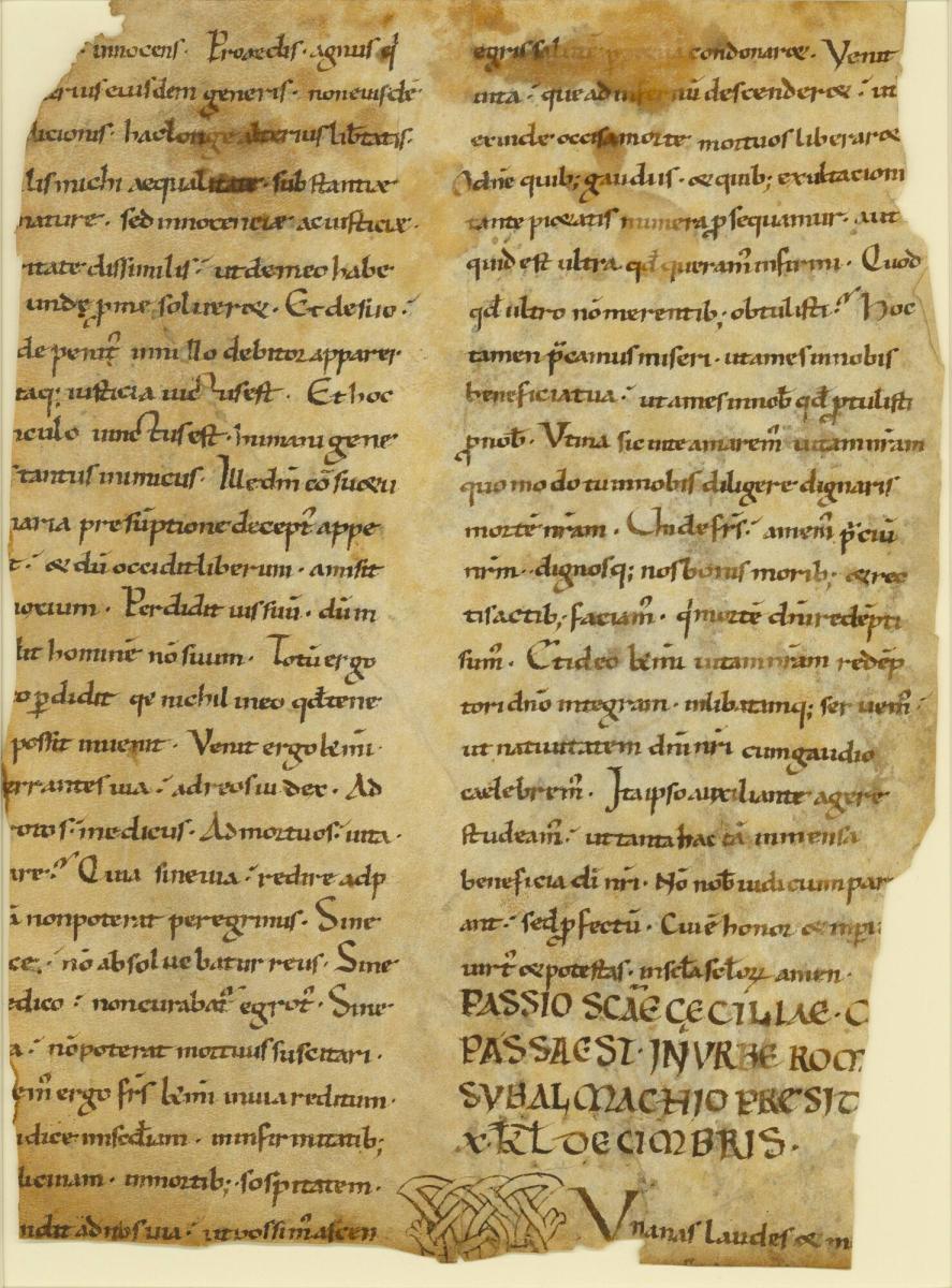Page from a Book of Homilies with Text Relating to St. Cecilia, Patroness of Music (Latin)