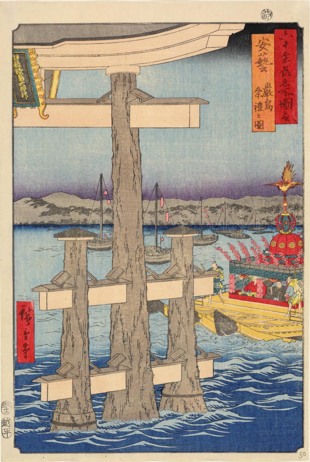 Festival at the Itsukushima Shrine in Aki Province, no. 50 from the series Pictures of Famous Places in the Sixty-odd Provinces