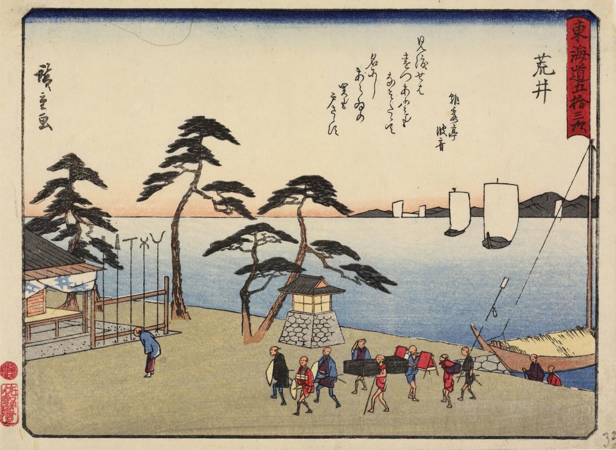 Boat Landing at Arai, with a Poem by Chokatei Namine, no. 32 from the series The Fifty-three Stations of the Tōkaidō