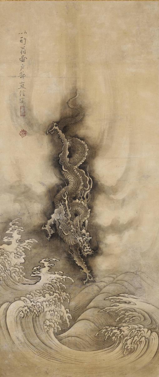 Not on viewDragons were traditionally regarded as auspicious creatures in Chinese and Japanese cultures, and it is possible that these scrolls were painted for a high-ranking aristocrat or warlord to signify the justness and effectiveness of his reign. Inscriptions on the scrolls reveal that they were inspired by the work of a 13th-century Chinese artist named Chen Rong. With their powerful brushwork, well-structured compositions, and Chinese-influenced subject, these paintings are typical of the Kanô family style that dominated Japanese painting between the 15th and 17th centuries.