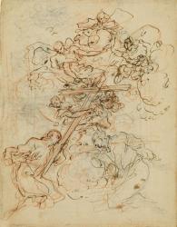 Adoration of the Cross by Two Deacons with Angels; Studies for Altarpiece with Immaculate Conception or Virgin in Glory (verso)