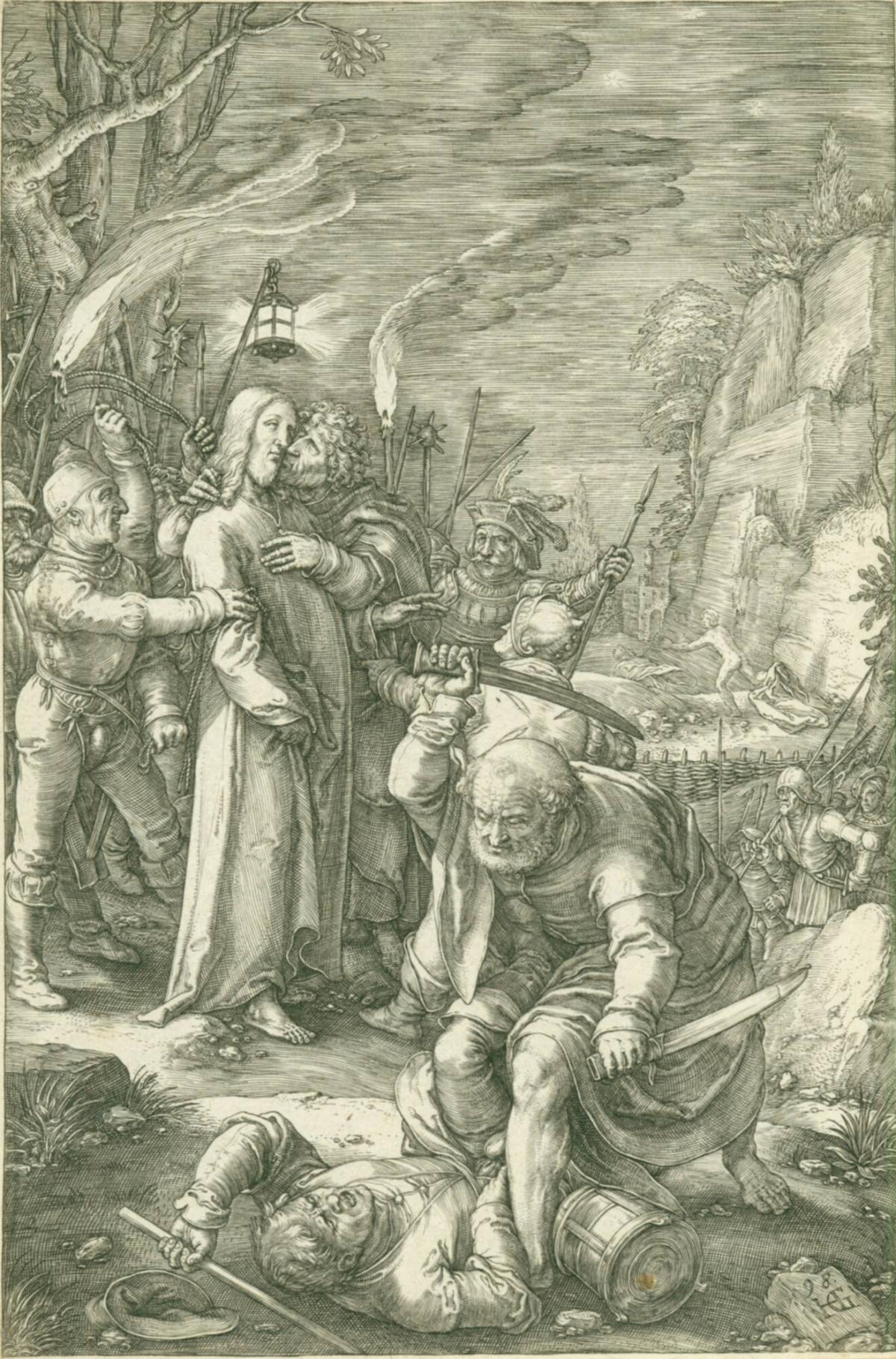 Not on viewDepicted here is one of twelve engravings that comprise the passion cycle executed by Hendrick Goltzius, dedicated to Cardinal Federigo Borromeo (1564-1631). Somewhat paradoxically, it was Goltzius' adeptness at replicating the styles of other artists that set him apart from his peers. According to the account provided in Karel van Mander's Schilder-Boeck of 1604, Goltzius became interested in imitating the styles of the old masters and of his contemporaries after visiting Italy in 1590. In this series, each print masterfully emulates the delicate crosshatching and softness of line that Dutch artist Lucas van Leyden (1494-1533) used in his engravings of 1512-20. As van Mander noted, Goltizus' compositions diverge from those of Lucas van Leyden, as Goltizus incorporates compositional elements taken from Albrecht Dürer's (1471-1528) passion cycles, as well as elements of the artist's own invention.