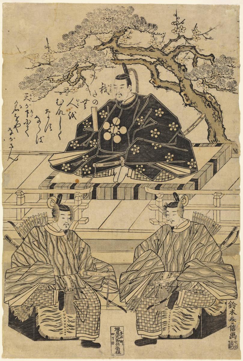 Sugawara no Michizane Seated in State with Two Court Attendants