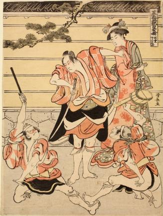 Datehei Protecting Chizukahime from Attackers Outside Ishidō’s Mansion, from a series of illustrations for the play Go taiheiki shiraishi banashi