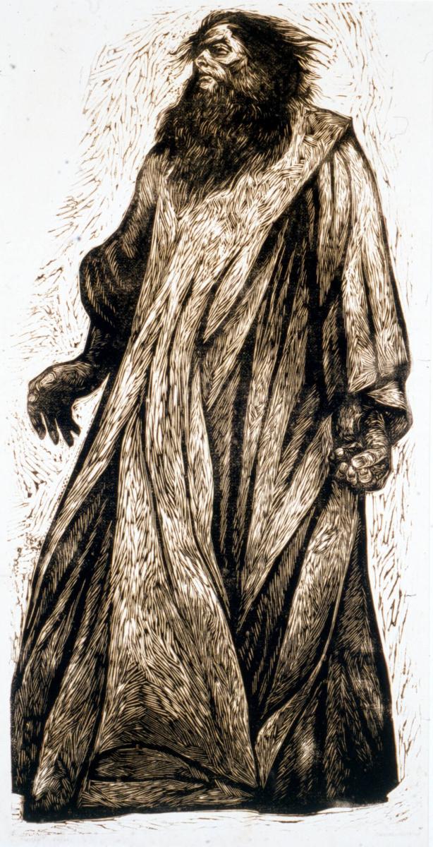 Not on viewAn African American artist born Chicago, Charles Wilbert White is best known for his Works Progress Administration mural projects. In a large format reminiscent of the mural’s monumental scale, this linocut represents Micah, a Hebrew prophet from the Old Testament who is known as a challenger of unjust leaders, champion of the poor, and proponent of social justice.