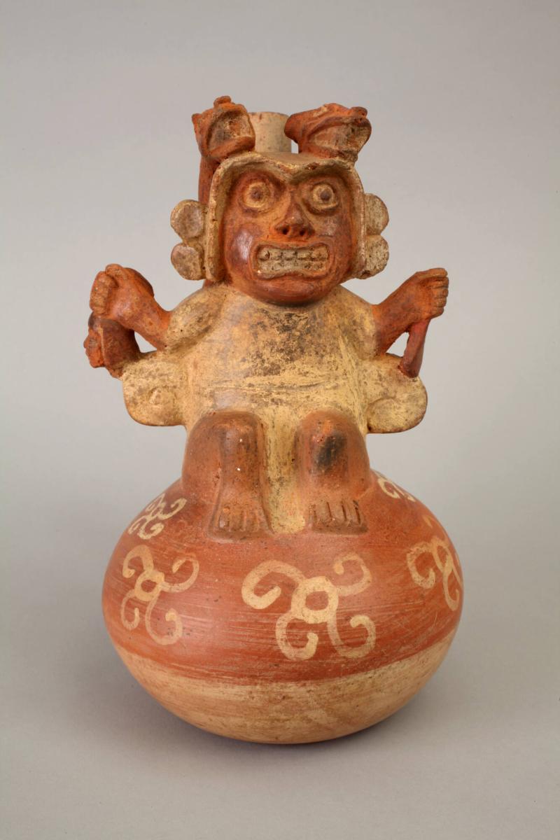 Molded Vessel with Warrior-shaped Finial and Stirrup Handle