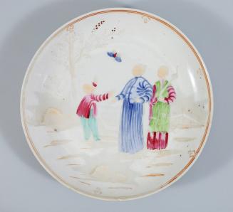 MediumPorcelain with iron-red, black, magenta, green, and blue glaze