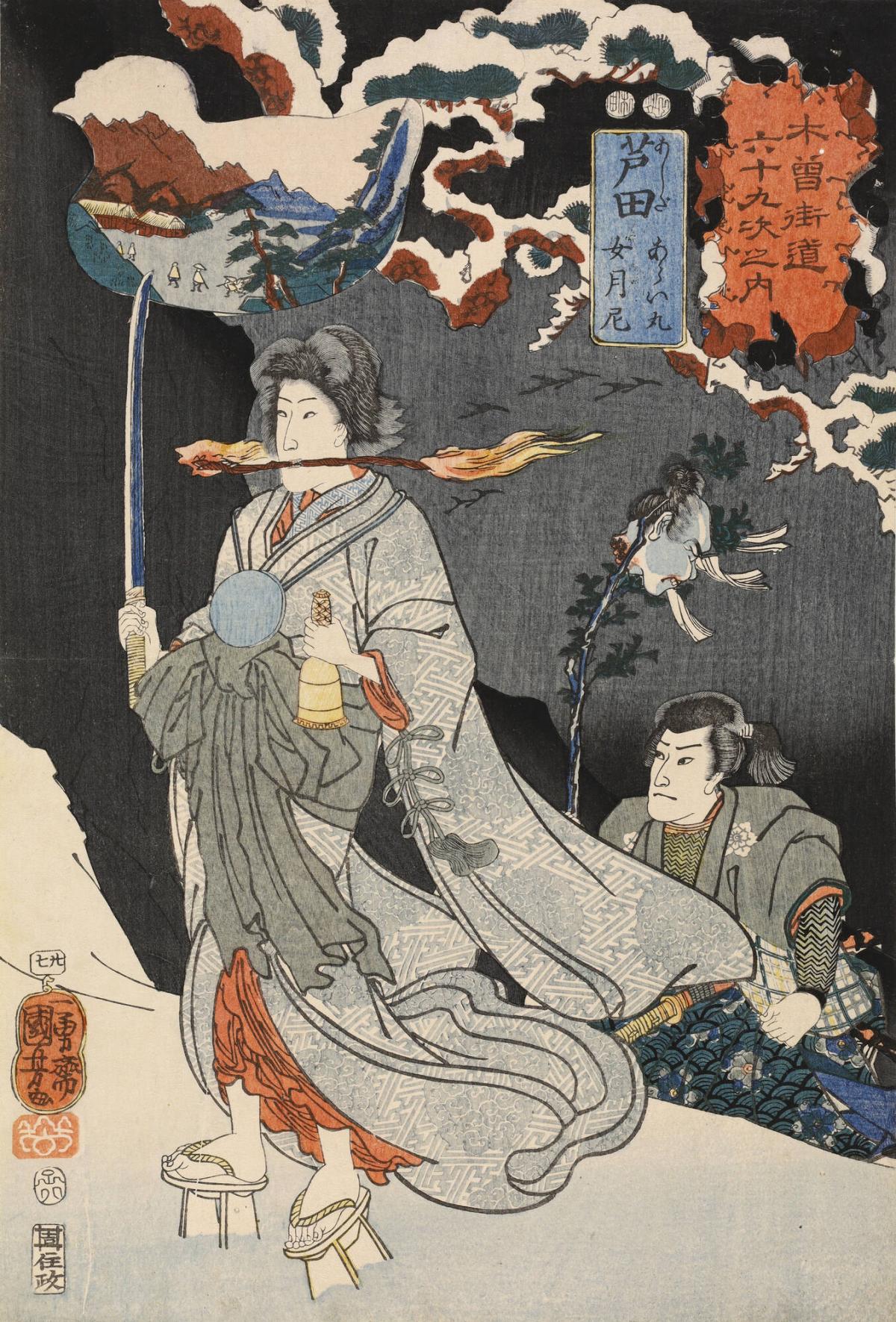Ashida: Araimaru and Jogetsuni Performing Sorcery with an Enemy's Severed Head, no. 27 from the series The Sixty-nine Stations of the Kisokaidō