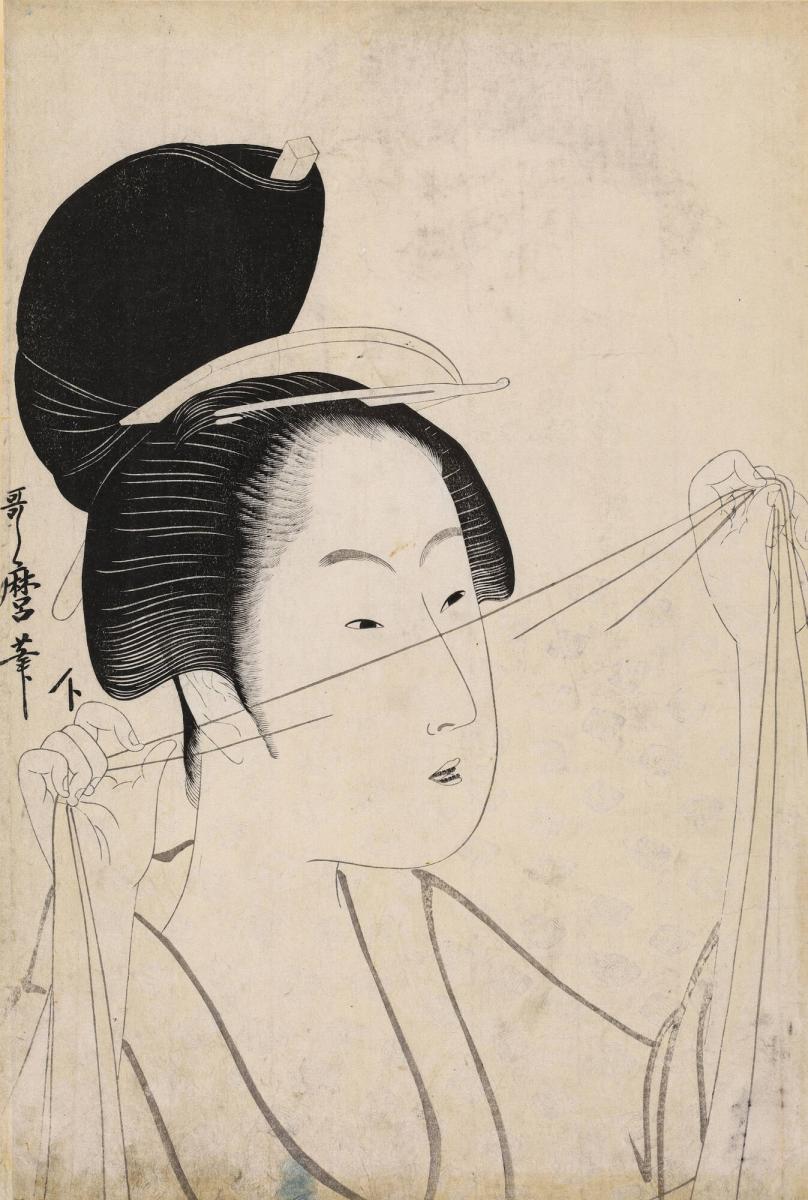 Woman Looking through a Piece of Transparent Silk Cloth, from an untitled series of Bust Portraits of Women