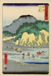 The Satta Foothills from the Okitsu River at Okitsu, no. 18 from the series Pictures of Famous Places of the Fifty-three Stations [of the Tōkaidō]
