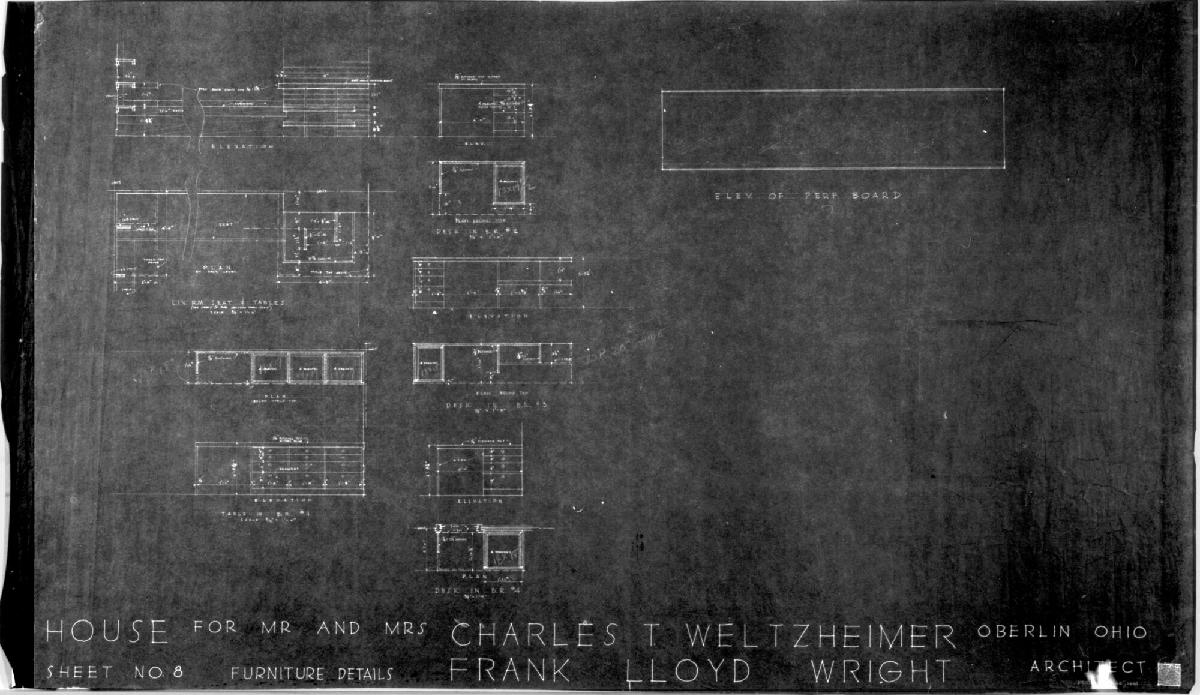 Sheet No. 8: Furniture Details, for The Charles Weltzheimer House, Oberlin, Ohio