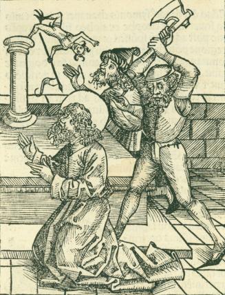 Not on viewMichael Wolgemut was a prominent Nuremburg-based artist, well known today for having once taught Albrecht Dürer (1471-1528). This illustration of a saint's beheading is one of many works by Wolgemut to appear in the first edition of Hartmann Schedel's Nuremberg Chronicle (1493). This text, which aimed to provide a comprehensive history of the world, quickly became a veritable best-seller in Renaissance Europe. The unprecedented number of illustrations included in the Chronicle, over 1800 in total, was a major factor contributing to the book's success.