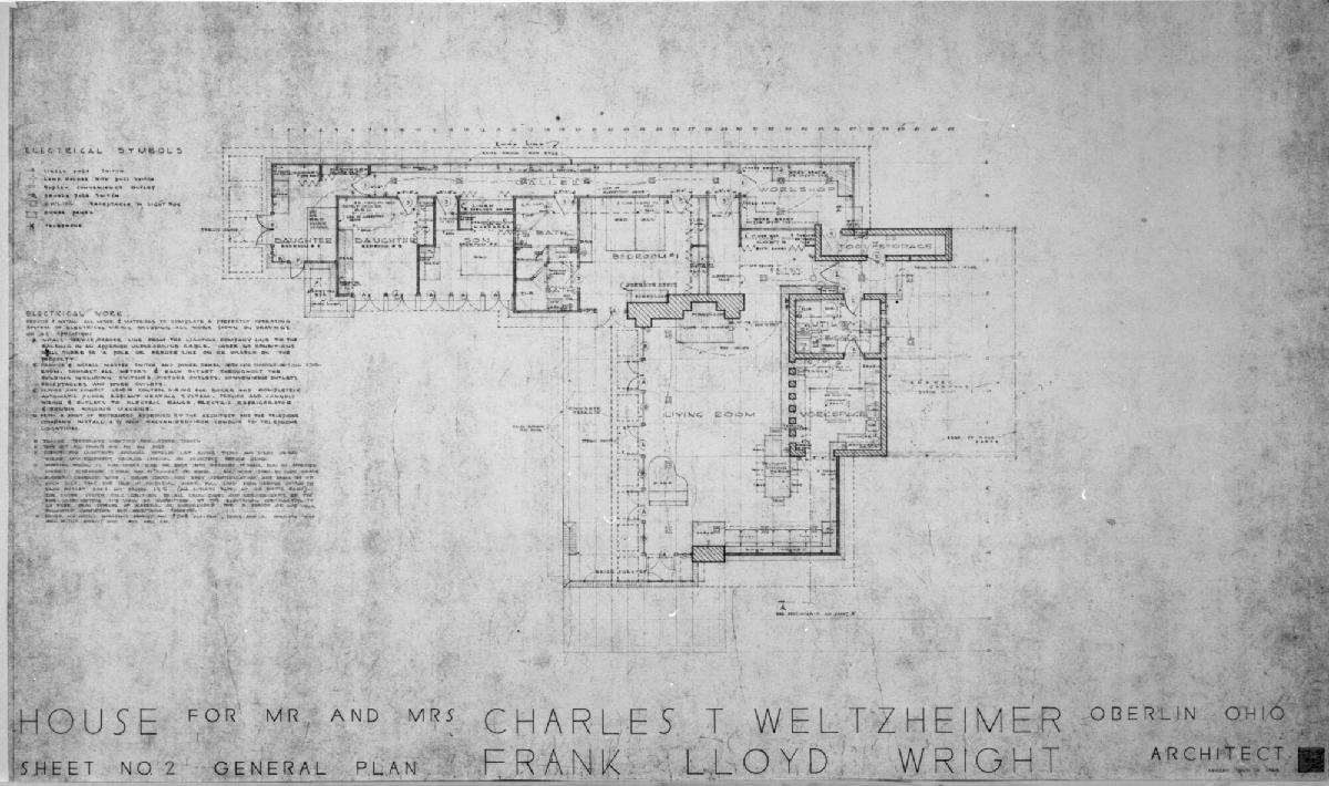 Sheet No. 2: General Plan, for The Charles Weltzheimer House, Oberlin, Ohio