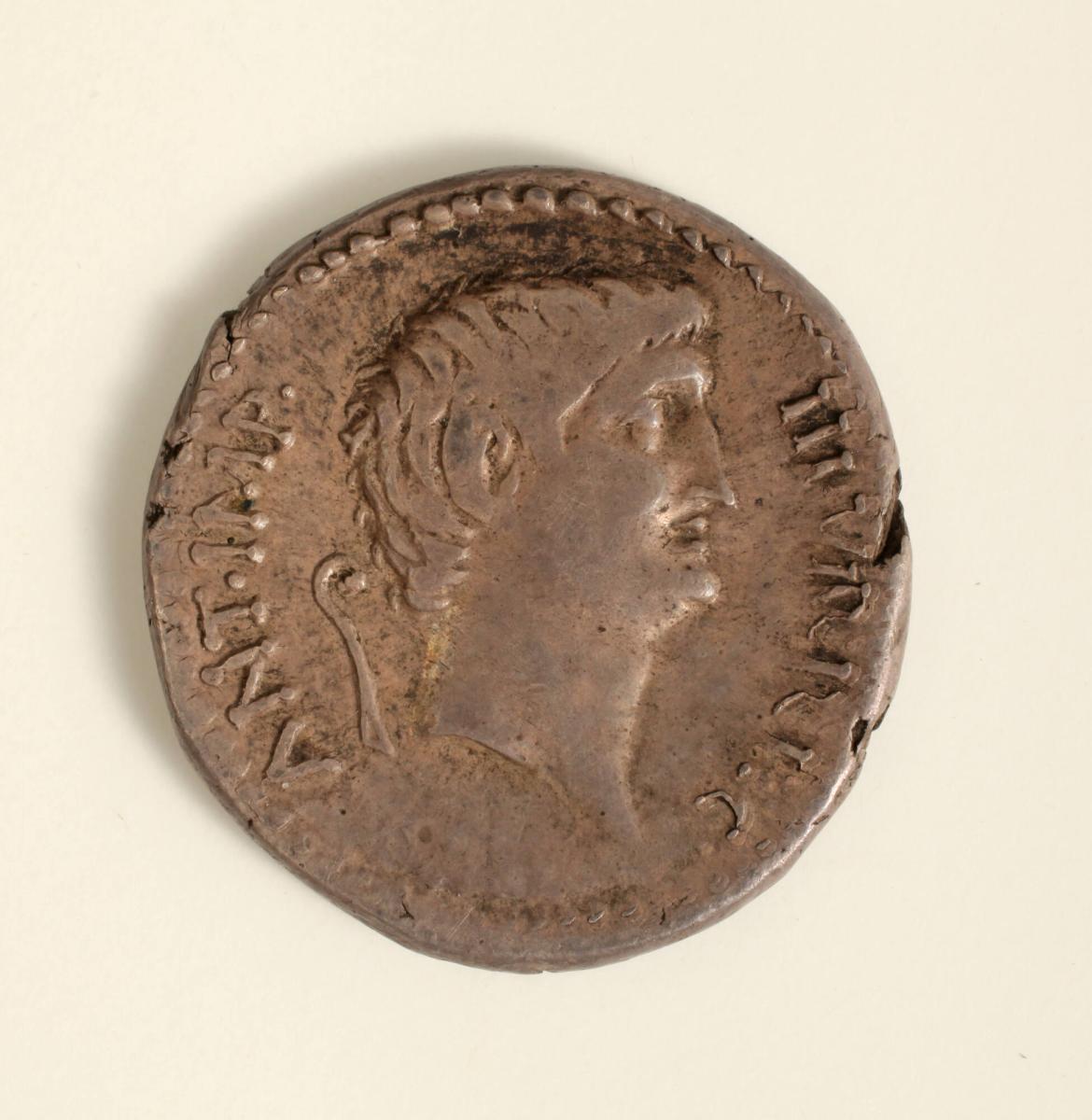 Denarius: Obverse, Head of Mark Antony; Reverse, Ship's Prow, Star Above