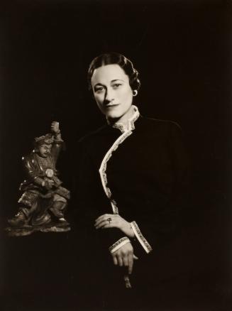 Not on viewIn 1935 Mrs. Simpson (born Bessie Wallis Warfield, 1896–1986) was an American socialite known for her charm and irreverence, and romantically linked with Edward, the Prince of Wales (1894–1972), a scandalous relationship due to her being married. In the following year Edward, then King Edward VIII, would abdicate in order to marry her. When the photo was taken, she was a figure of popular fascination, at the height of society and fashion.