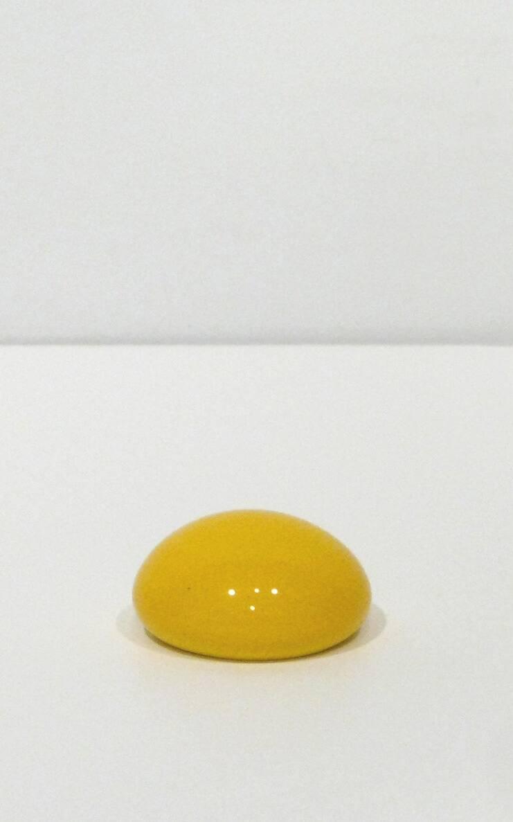 Not on viewWorking with glassblower Jonathan Christie, Kiki Smith produced an edition of 150 of these yellow glass orbs, selling them individually and in groups of three. Yolk is a multiple: a typically small-scale, three-dimensional work reproduced and distributed like a fine art print or artist’s book. As is the case for many multiples, the individual iterations of Yolk are not all precisely the same; these three examples vary in color, uniformity of hue, and size, betraying their hand-crafted quality. Difference becomes apparent through repetition, which is true not just for Smith’s glass yolks, but for all things in nature, where individuality marks every member of a species despite shared characteristics.