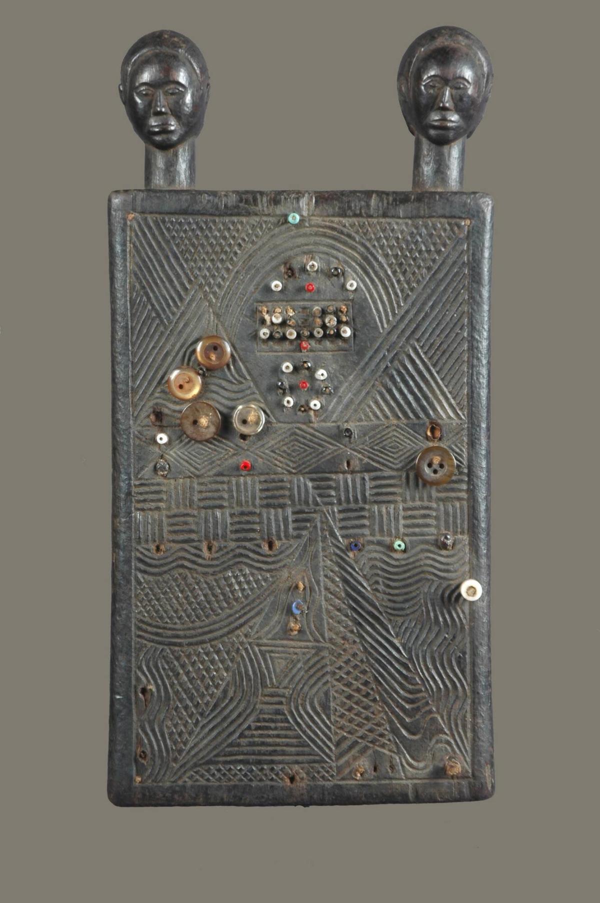 To achieve this goal and memorize the enormous amount of Luba oral history, members of the Mbudye society utilized a mnemonic device known as a Lukasa. The Lukasa was always of generally rectangular form, with one or two heads rising from the top, probably representing original ancestors.