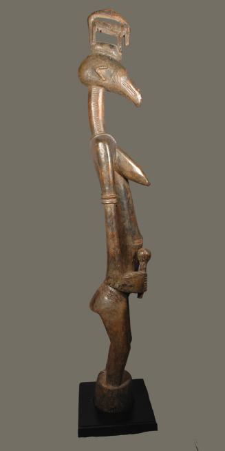 Not on viewAmong the Senufo of the Ivory Coast, initiation is the domain of the Poro society. The Poro society oversees circumcision and the sequestering of boys into a bush camp, while they are taught the ways of adulthood. During initiation rites, dances are preformed that are accompanied by the pounding on the ground of large images representing the primordial ancestors of the Senufo people.