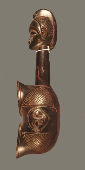 ProvenanceHerman Bigham; by gift to Peter G. Gould and Robin M. Potter, Haddonfield, NJ; by gift 2011 to Allen Memorial Art Museum, Oberlin, OHThough not the case with their masking, this intermingling of styles certainly holds true in the symbols of rank of many of their chiefs with regards to headgear, jewelry and in this case, the cups that they drink palm wine from as a symbol of their prestige. The classical Yaka or Suku prestige cup is also called a ‘pinched cup’ in that the sides bend inward to almost touch one another. Such cups are said to be styled after a calabash form, and the delicate carving of the inward pinching walls is considered a sign of a virtuoso carver.