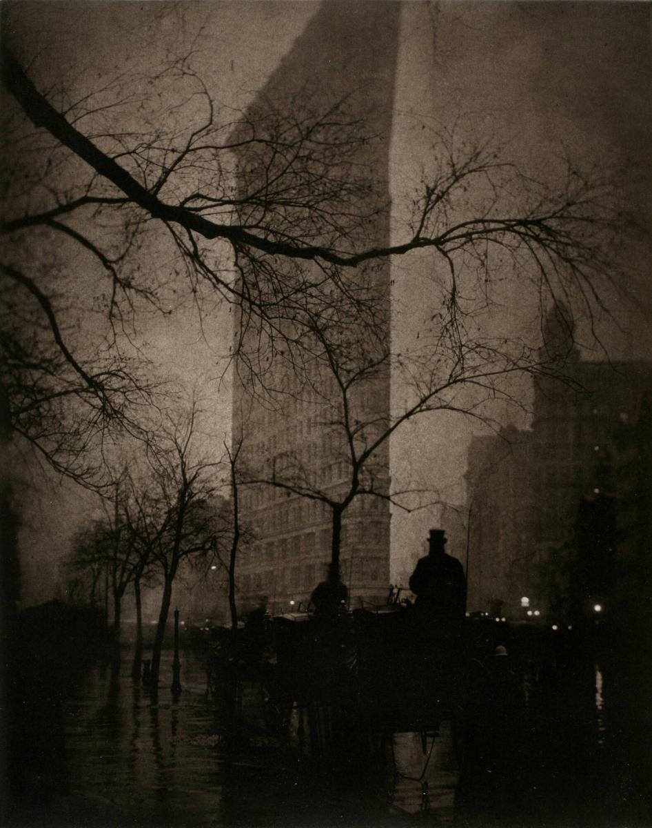 Not on viewSteichen founded the Photo-Secession group with Alfred Stieglitz, who championed photography as a fine art and established the 291 gallery in New York. They believed that photography was a powerful and expressive visual medium. They embraced a Pictorialist approach, using soft focus, rich tonal contrasts, and carefully arranged compositions to craft an image on par with painting in terms of aesthetic and emotional effect. The Flatiron is a seminal image in the history of American photography, celebrating both the architectural ingenuity of this early skyscraper—completed just three years before this exposure was taken—as well as the artistic sensibilities of the photographer.
