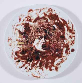 Not on viewUntitled (Medusa Plate) was produced as the 1999 gift for the Peter Norton Family Christmas Project, a program in which the software giant commissioned a contemporary artist to produce a multiple to distribute to the family’s friends in celebration of the holidays. Muniz’s plate features a pasta marinara rendition of Caravaggio’s round-format painting Medusa (ca. 1597, Uffizi, Florence).