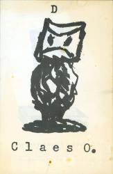 Exhibition announcement for "Drawings Sculptures Poems" by Claes Oldenburg at the Judson Gallery, May 22 - June 10, 1959