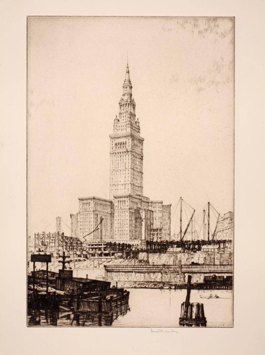 Terminal Tower from the River, November 1928, from the Cleveland Union Terminal Series