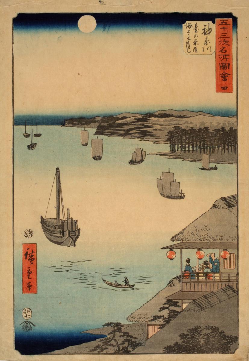 Kanagawa, View over the Sea from theTea Houses on the Embankment, from the series Famous Sights of the Fifty-three Stations