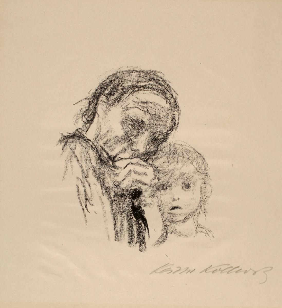 and her young child stare out at the viewer. Kollwitz suffered the loss of one of her two