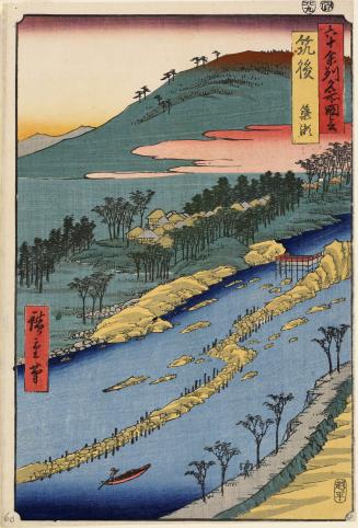 The Weir in the Shallows at Yanase in Chikugo Province, no. 60 from the series Pictures of Famous Places in the Sixty-odd Provinces