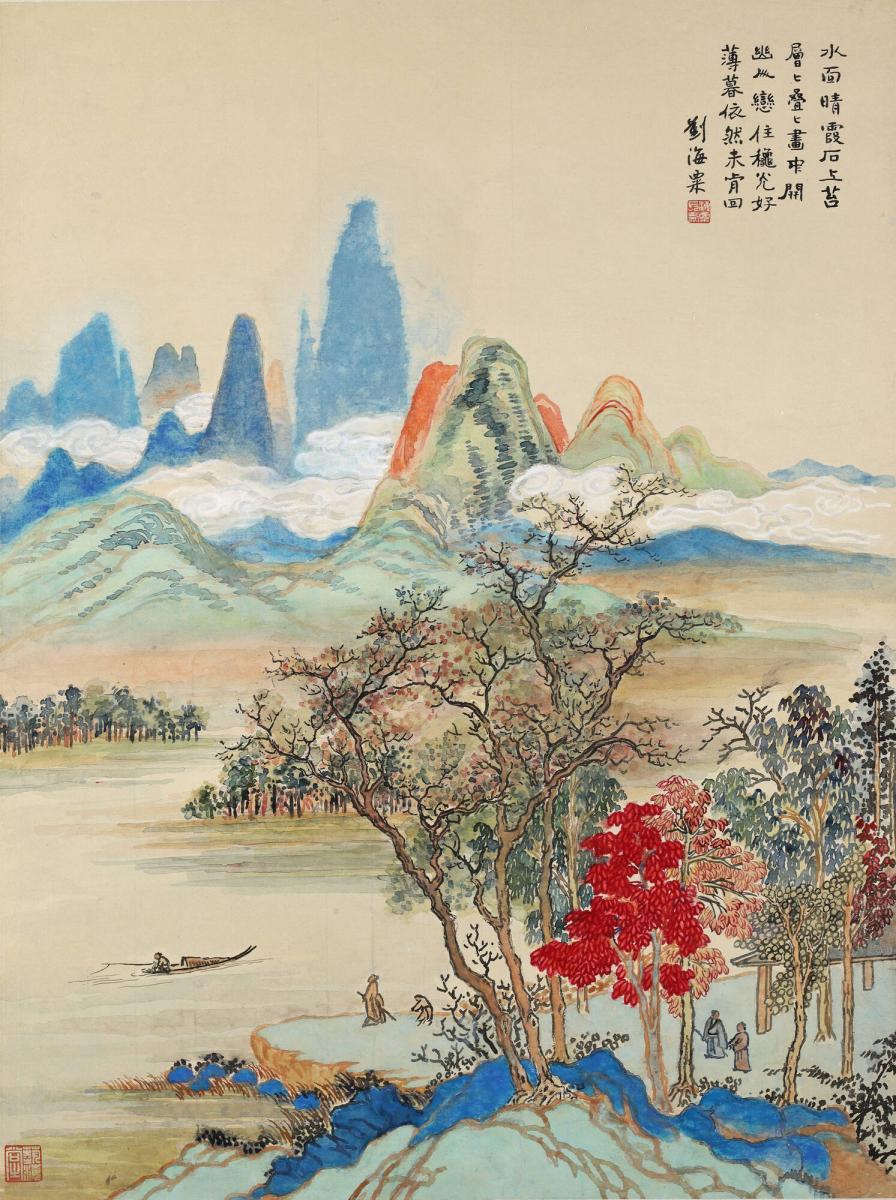 “Rosy clouds on the water and moss on the stones Layers of layers diffused in painting A hermit in love with autumn scenery Reluctant to return even at twilight.”