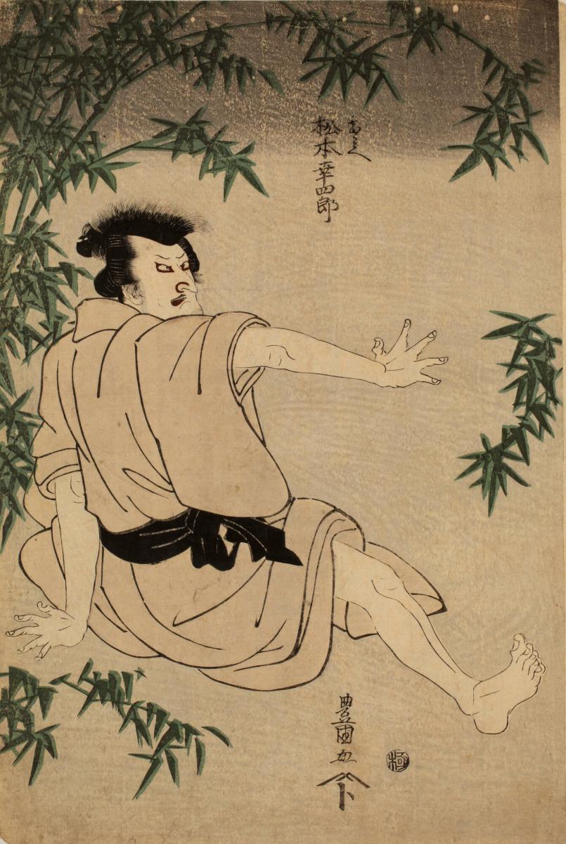 Actor Matsumoto Kōshirō in a Kabuki Role, Surrounded by Bamboo