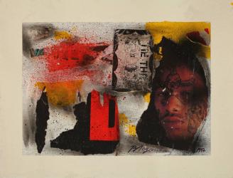 MediumCollage, fumage, and sand on paper