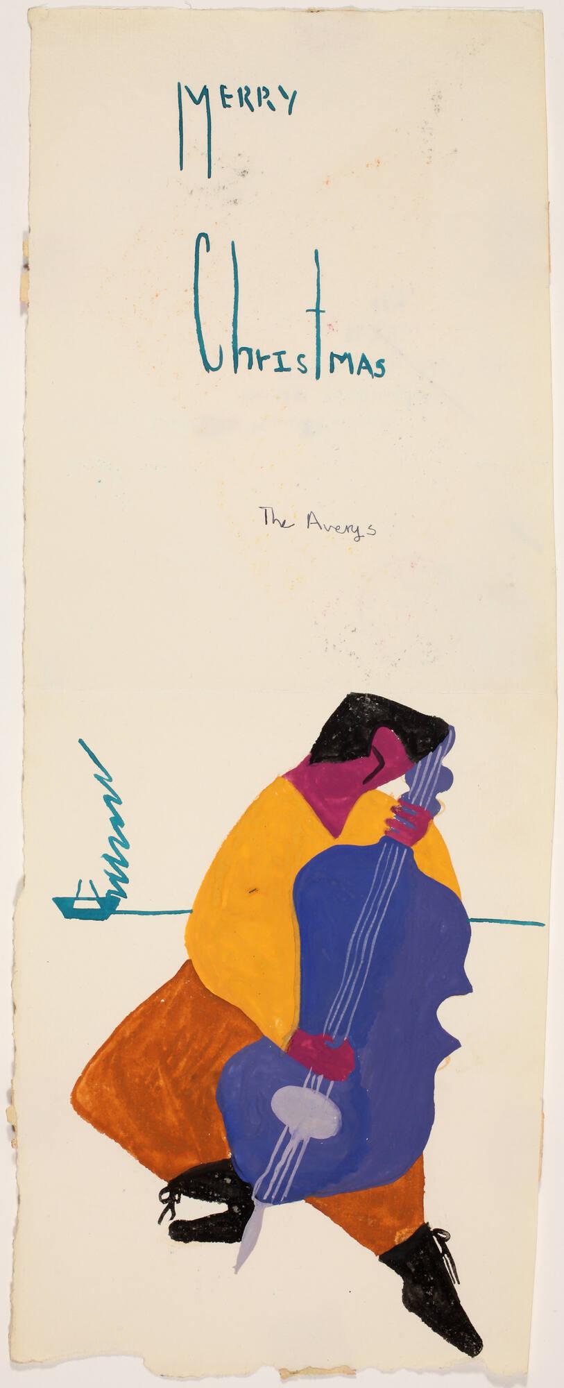 Greeting Card with Cello Player and Tree: Merry Christmas, The Averys