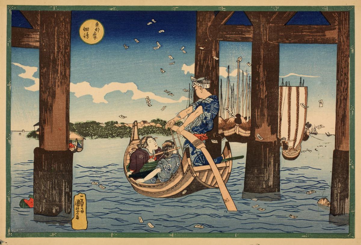 Pilgrim's Markers Fluttering into the Sea below the Bridge near Tsukuda Island