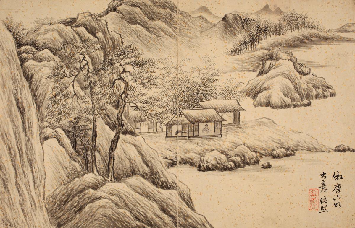 MediumInk and color on gold-flecked paper