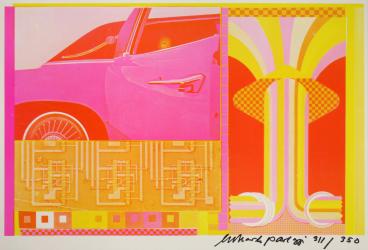 Not on viewEduardo Paolozzi, a member of the Independent Group, was known for his Pop aesthetic that juxtaposed found images from science fiction and American pulp magazines. Moonstrips Empire News, a print series with no predetermined order, encourages viewers to arrange and rearrange the pages as active editors of the suite. General Dynamic F.U.N., the second volume, combines geometric abstraction, iconic emblems and computerized diagrams into a dizzying array of visual information reminiscent of the mass media.