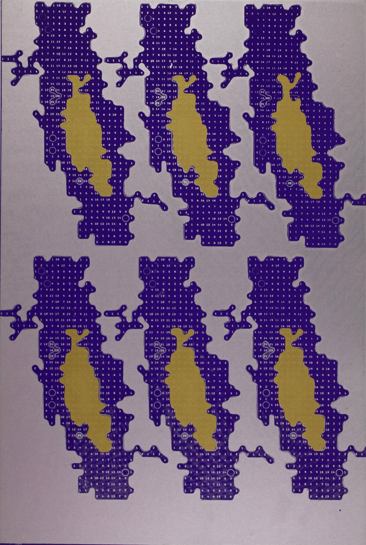 Eduardo Paolozzi, a member of the Independent Group, was known for his Pop aesthetic that juxtaposed found images from science fiction and American pulp magazines. Moonstrips Empire News, a print series with no predetermined order, encourages viewers to arrange and rearrange the pages as active editors of the suite. General Dynamic F.U.N., the second volume, combines geometric abstraction, iconic emblems and computerized diagrams into a dizzying array of visual information reminiscent of the mass media.