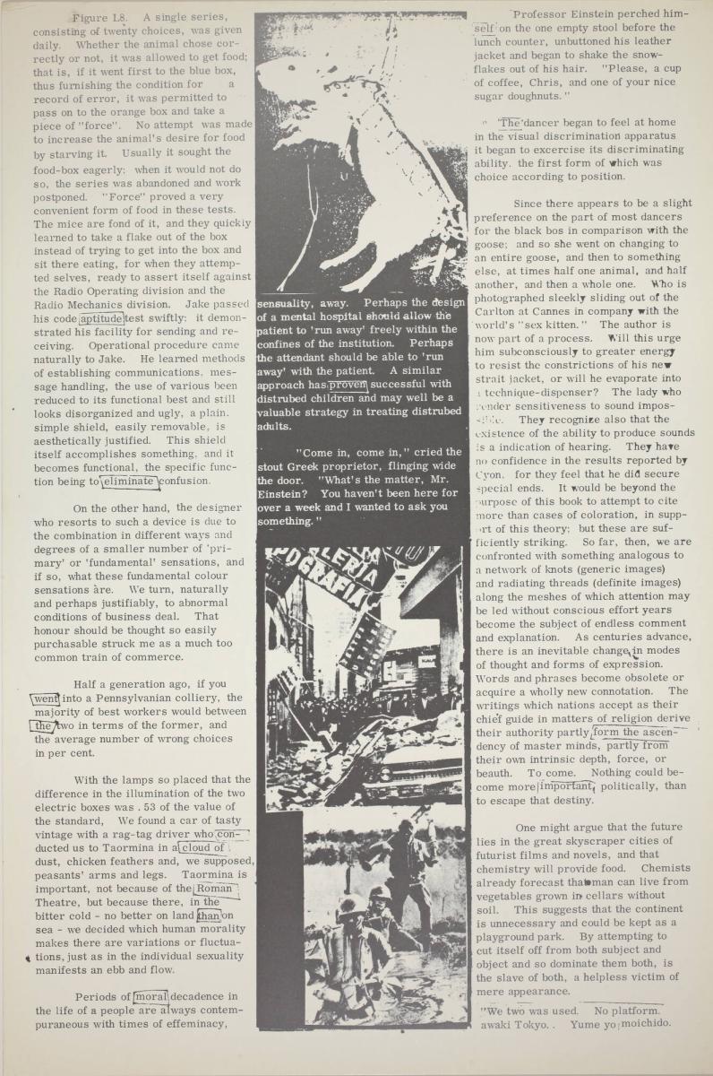 Not on viewEduardo Paolozzi, a member of the Independent Group, was known for his Pop aesthetic that juxtaposed found images from science fiction and American pulp magazines. Moonstrips Empire News, a print series with no predetermined order, encourages viewers to arrange and rearrange the pages as active editors of the suite. General Dynamic F.U.N., the second volume, combines geometric abstraction, iconic emblems and computerized diagrams into a dizzying array of visual information reminiscent of the mass media.