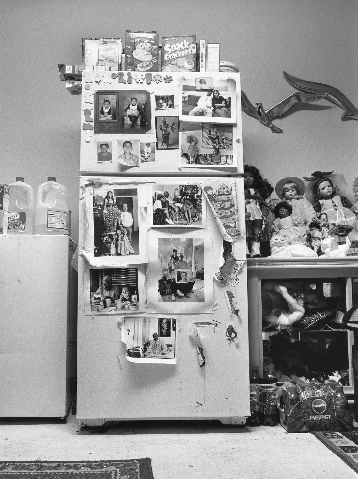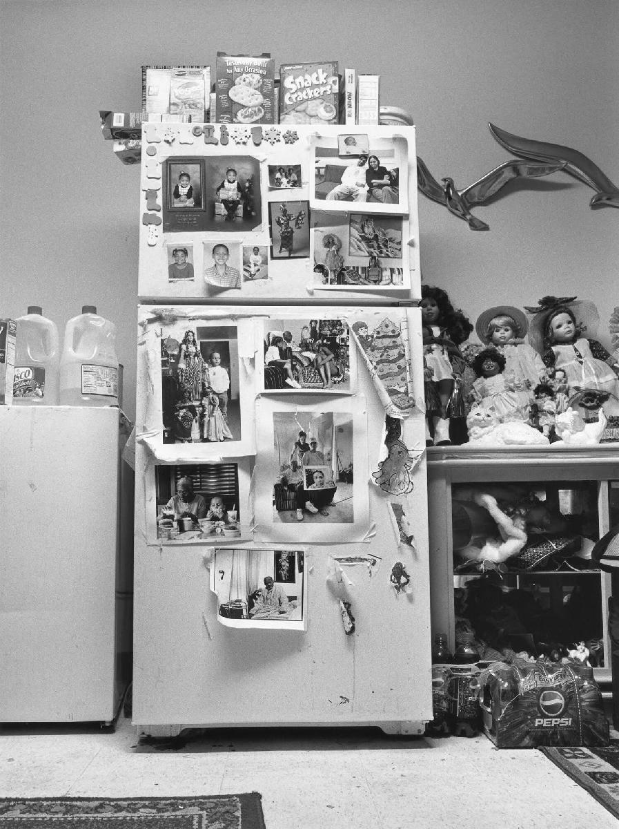 On viewAwarded a MacArthur “genius” fellowship in 2015, LaToya Ruby Frazier is a photographer who first trained the camera on her own life in a steel town in Pennsylvania. She has since documented sites of distress, including Flint, Michigan, through a lens that is intensely personal and political at the same time. This image of her grandmother’s refrigerator belongs to her earliest series, The Notion of Family. A visually dense image, it stands in for the artist’s grandmother, Ruby, whose house is filled with dolls, and for whom the kitchen is a center of gravity. The doors of the fridge are covered with family photos and prints of Frazier’s professional work, the latter printed at a larger scale, with evident skill in composition, framing, and direction. The two kinds of photography intermingle freely, not quite collapsing the bounds between art and vernacular photography, but suggesting that they are equally meaningful forms of representation. This image also serves to contextualize Frazier’s work—which has been lauded in major newspapers and has appeared in numerous gallery and museum exhibitions—through its first audience, her family. The refrigerator is a portrait of a proud grandmother as much as it is a snapshot of Frazier's early career.