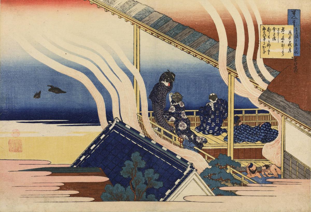 Resting after a Bath; Illustration of a Poem by Fujiwara no Yoshitaka, no. 49 from the series The One Hundred Poems as Explained by the Old Nurse