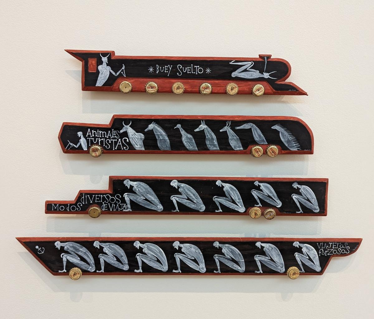 MediumWood, paint, bottle caps