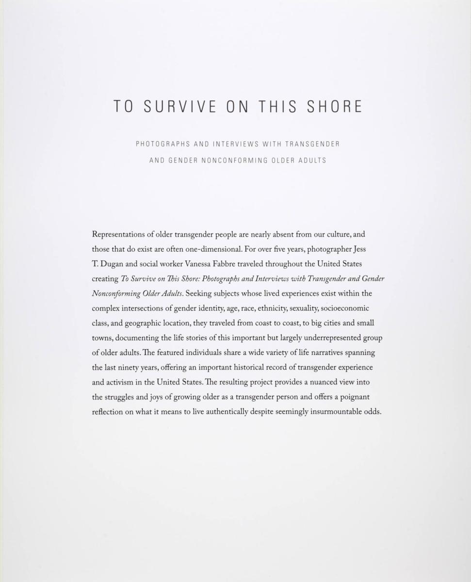 Title Page, from the portfolio To Survive on This Shore: Photographs and Interviews with Transgender and Gender Nonconforming Older Adults