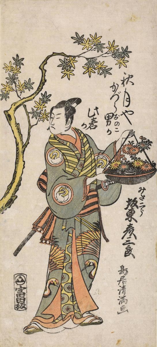 The Actor Band`o Hikosabur`o II as Midajir`o Holding an Arrangement of Flowers