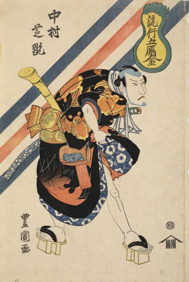 Nakamura Shikan Wearing a Bat-Patterned Robe and Carrying a Shakuhachi, from the series Ryuko Go Karigane (Five Fashionable Wild Geese)