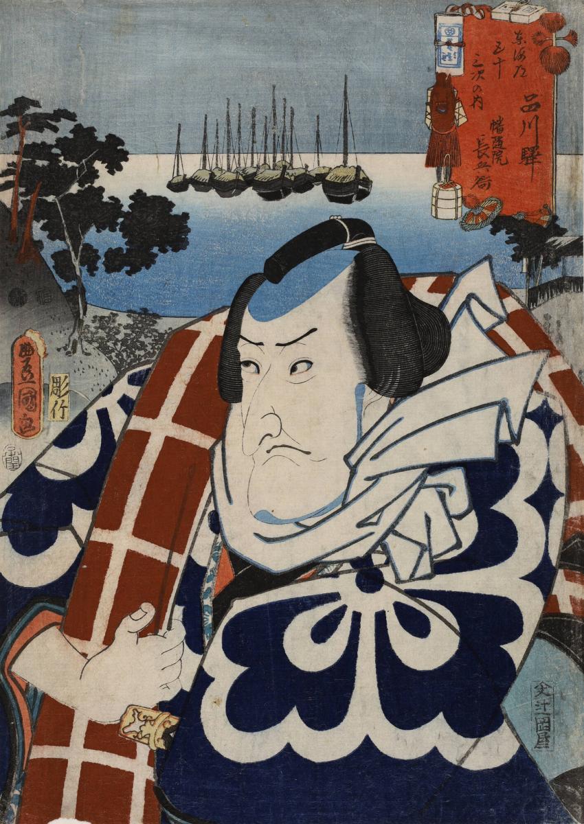 Shinagawa: (Actor Matsumoto Kôshirô VI as) Banzuiin Chôbei, from the series Fifty-three Stations of the Tôkaidô Road (Tôkaidô gojûsan tsugi no uchi)