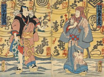 Ichimura Uzaemon as Honmachi Tsunagoro and Bando Hikosaburo as Umegaya Yoshibi