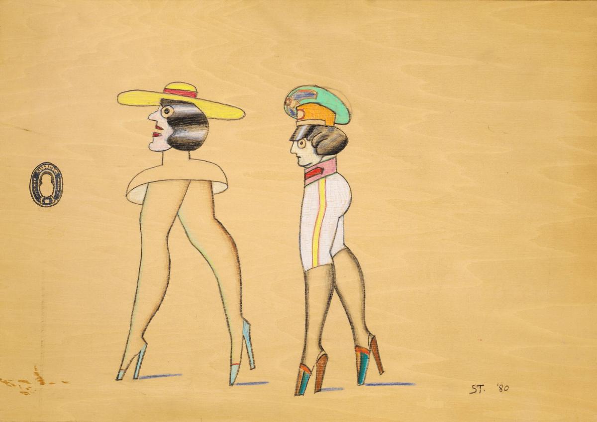MediumCrayon, pencil, colored pencil, and rubber stamp on wood panel