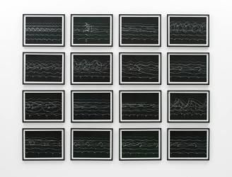 On viewThese photogravures are the result of Elisasson’s experiments with light waves and movement. Drawing on his experience as a breakdancer, Eliasson attached LED lamps to his body and moved through a dark space, using a camera with