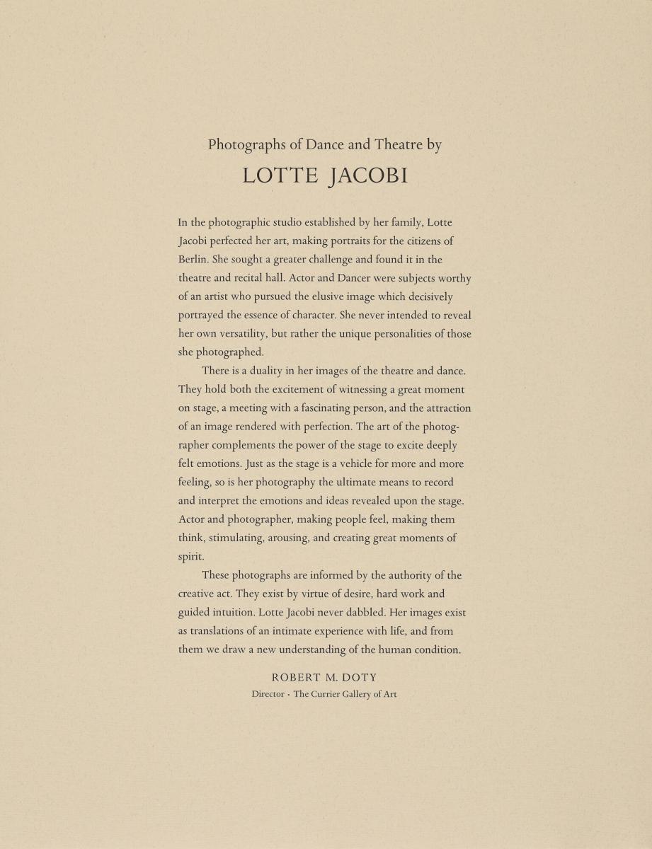 Introduction Page, from Lotte Jacobi Portfolio II